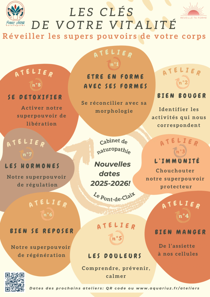 Ce septième atelier soulèvera le voile sur les déséquilibres hormonaux, souvent à l’œuvre derrière les troubles chroniques: fatigue persistante, prise de poids résistante, manque d’envie,…